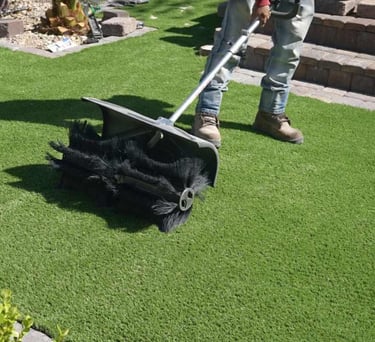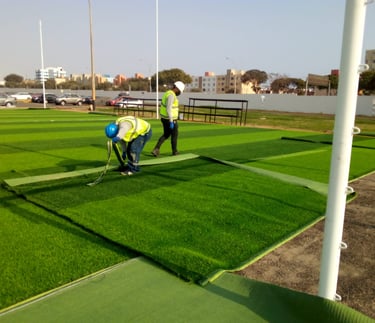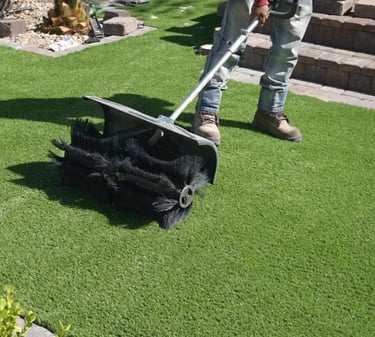 Para garantizar la durabilidad del grass sintético, realizamos mantenimientos periódicos que incluyen cepillado para enderezar fibras y reposición de caucho en zonas desgastadas.